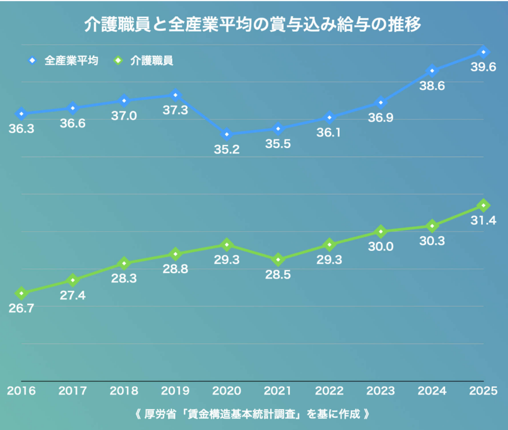介護と他産業の賃金格差、月8.2万円 全体の賃上げ加速で縮まらず 厚労省最新データ